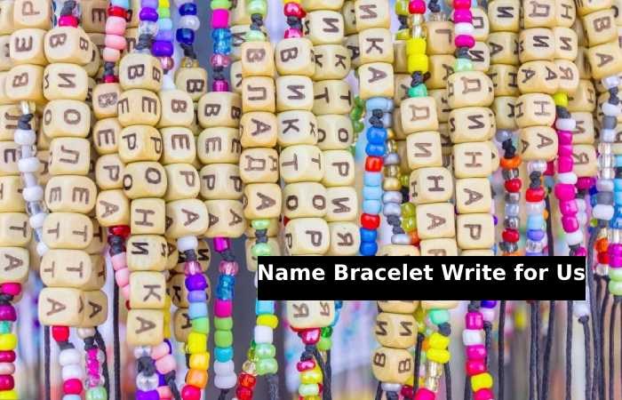 - Beaded bracelets with names or initials of beads are in different colors or materials.